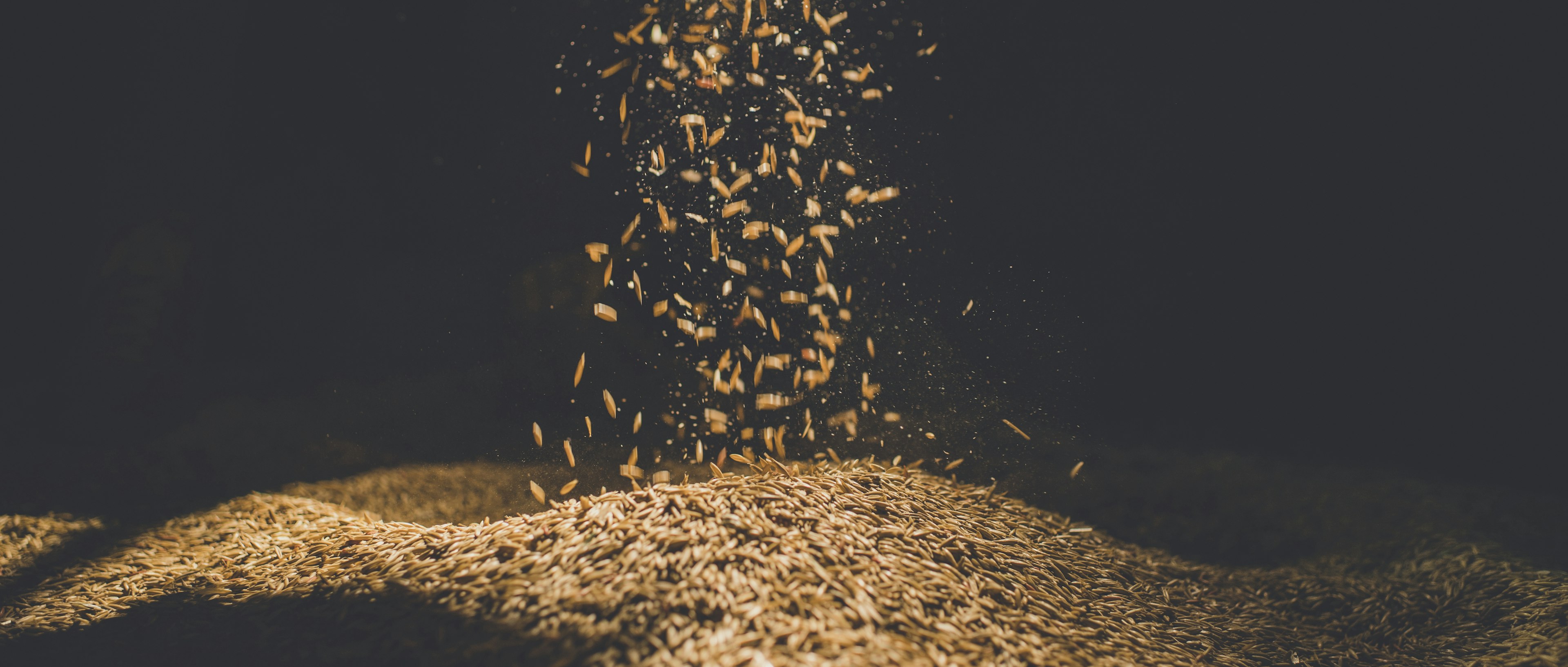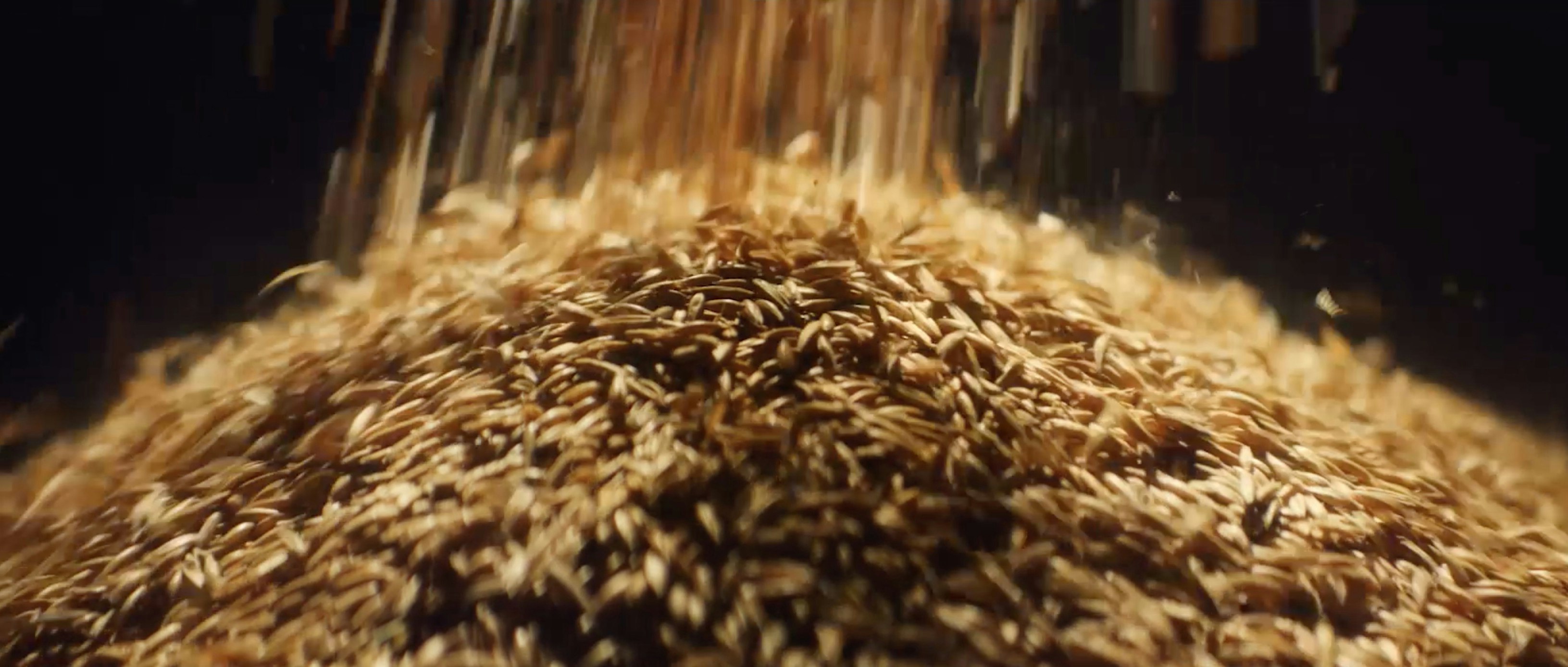 After capturing the dawn, we built a mini studio in one of Hartley's barns. Being able to control the light we captured some details of the oats falling and tumbling which we knew we wouldn't be able to capture inside the combine harvester and in the factory the following day. It was a relatively simple setup and some of the time it was just a couple of us pouring oat grains through beams of light... but sometimes the simplest things come out the best!