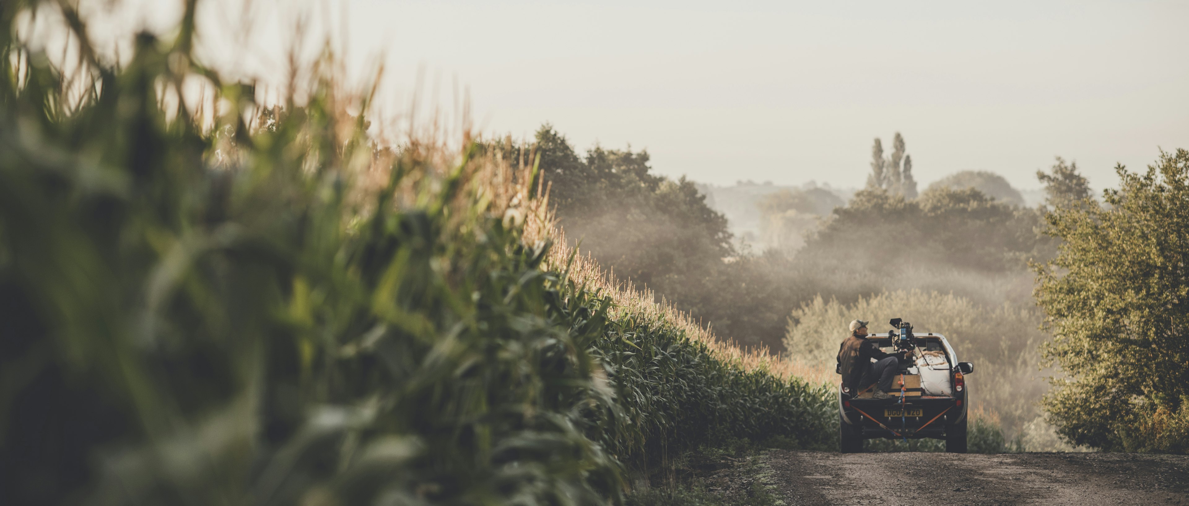 We began the day capturing the farm come to life, waking up with the dawn. We followed the farmer, Hartley, as he drove his truck out through his fields. It was a perfect morning and the light that morning was something else. Streaks of golden light cutting through the morning mist across the corn fields.