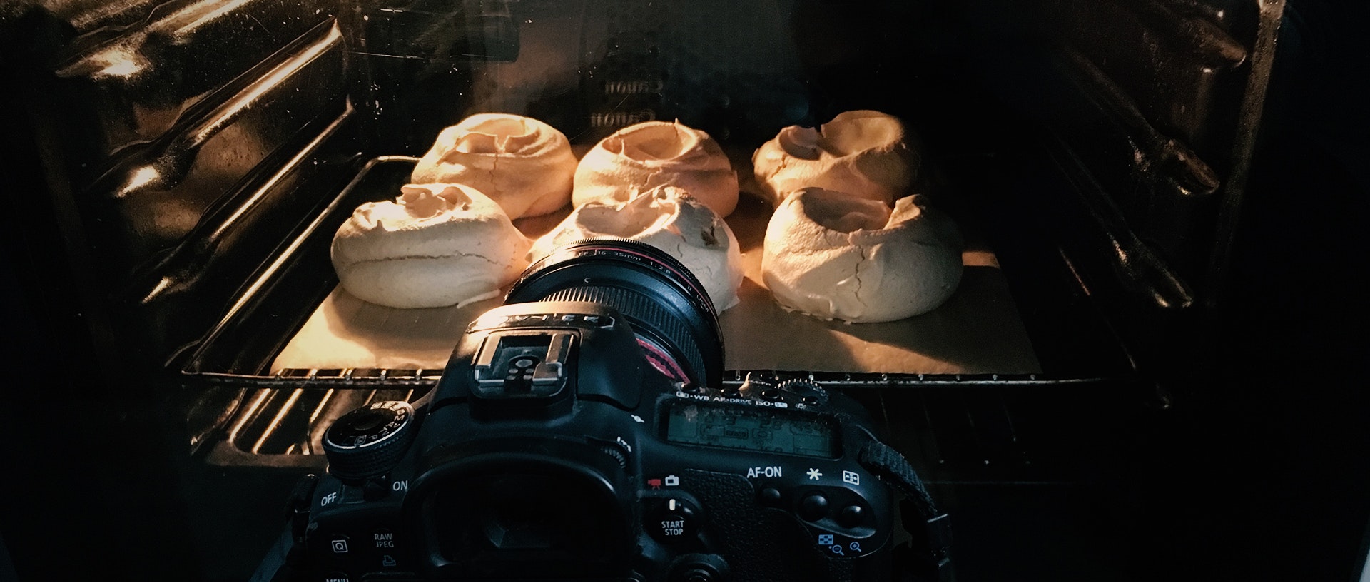BTS: The cooking of the meringue was achieved shooting a stills timelapse, through a clear glass oven.