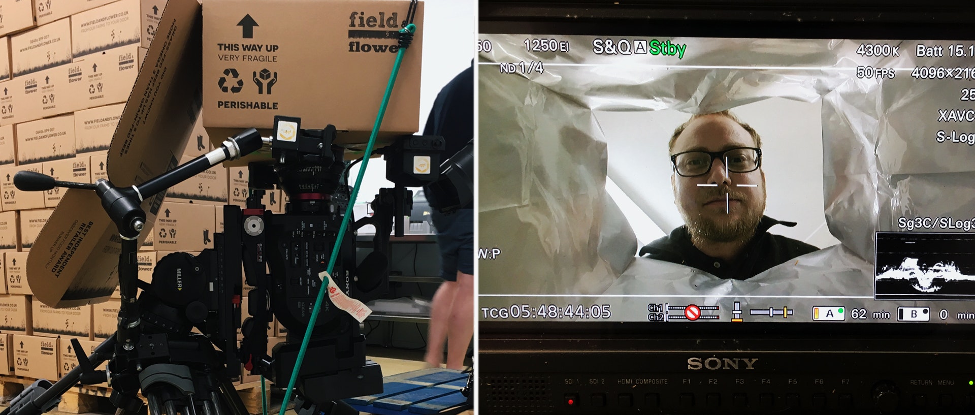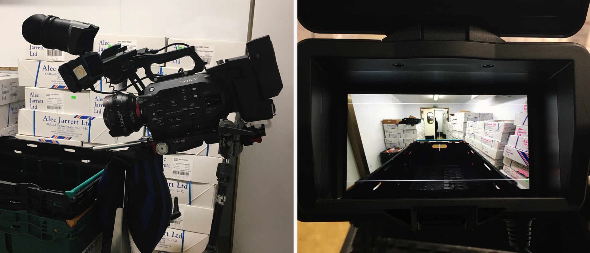 Throughout the video I wanted to mount the camera in some pretty unusual angles, rigging the Sony FS7 body to gates, trolleys, inside boxes, in the back of vans…